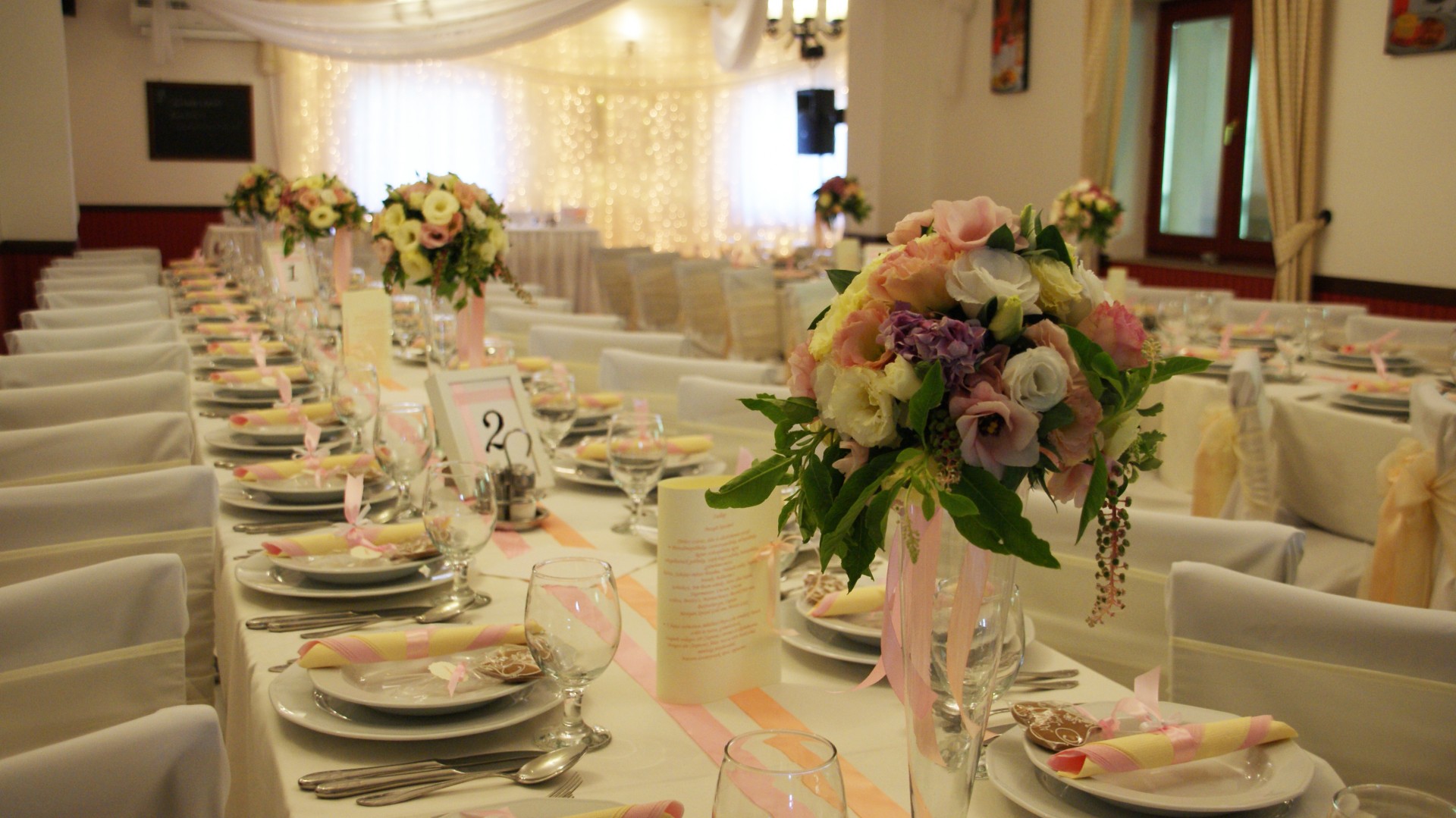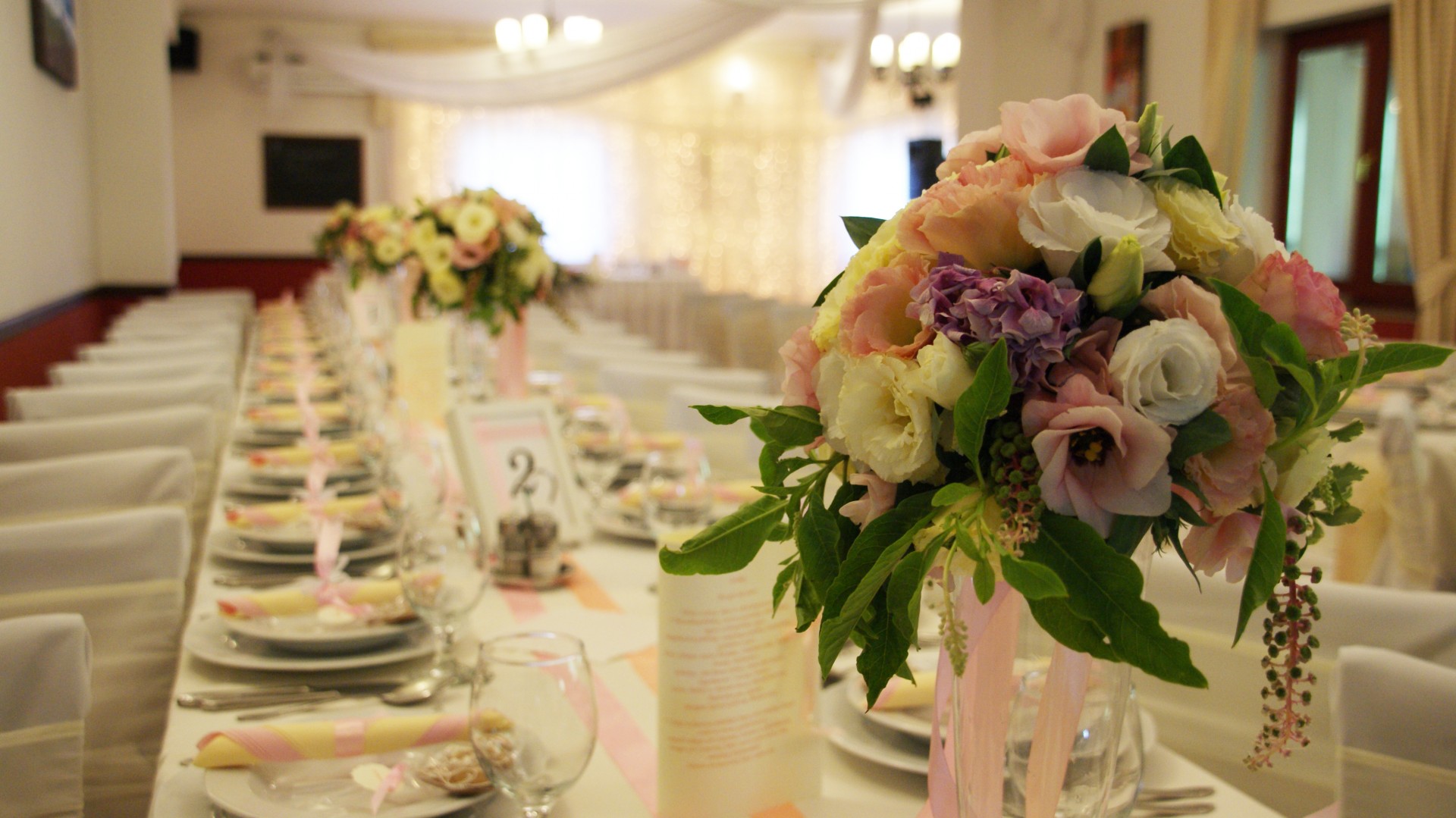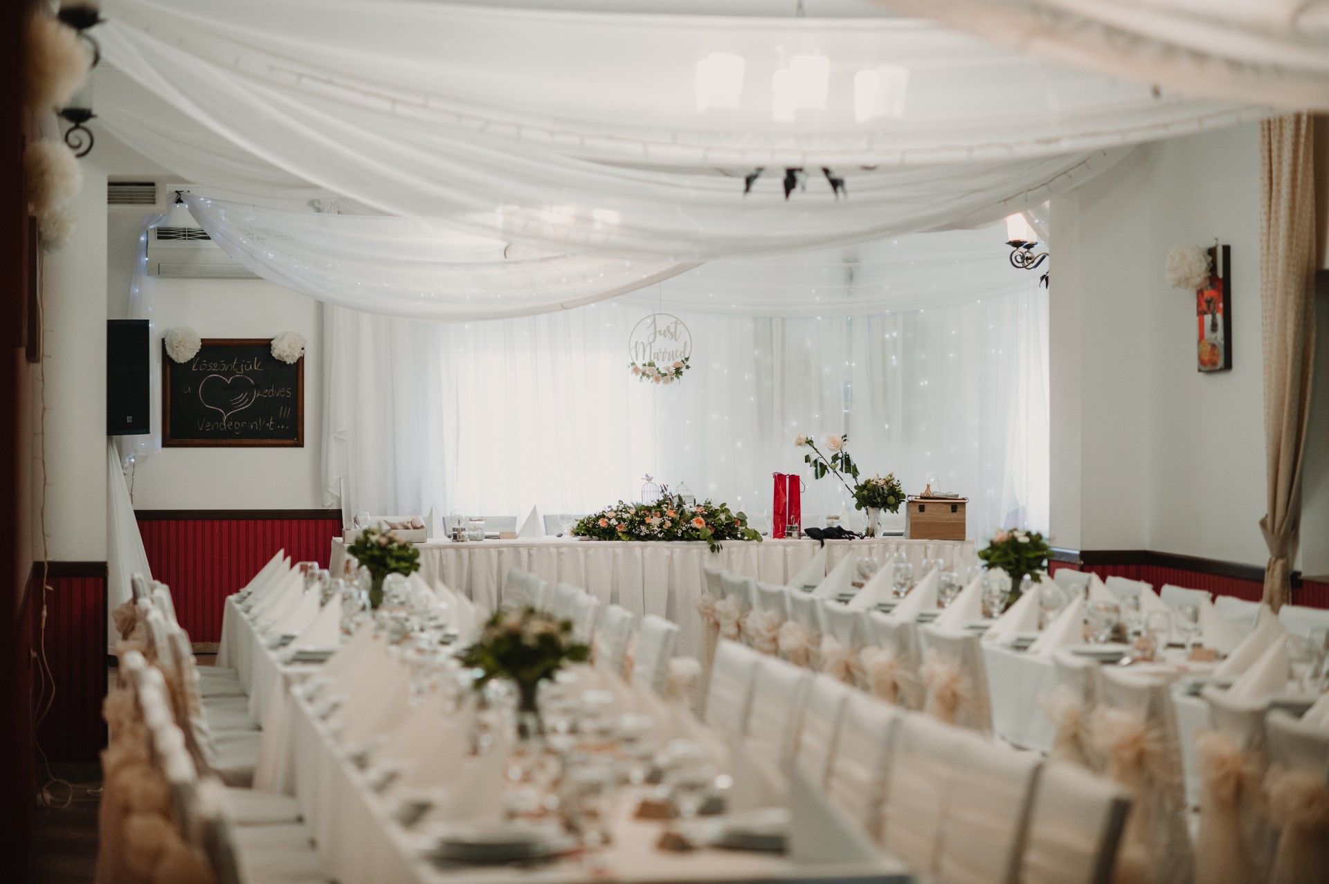 Fehér - krémszínű dekoráció az étteremben pasztell színekkel