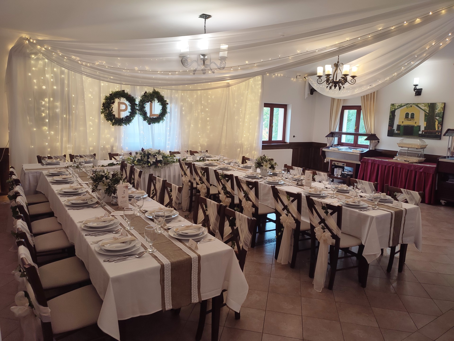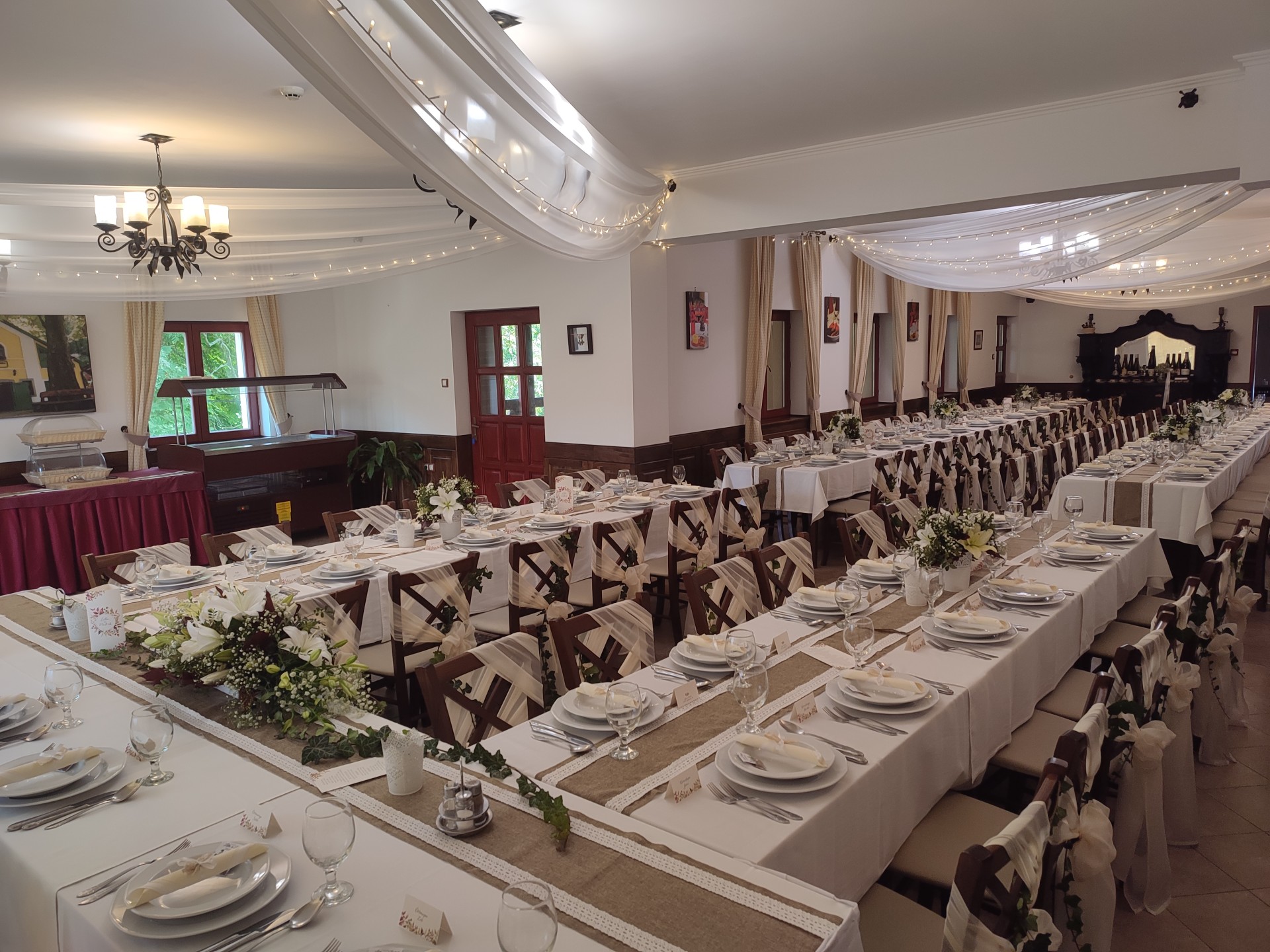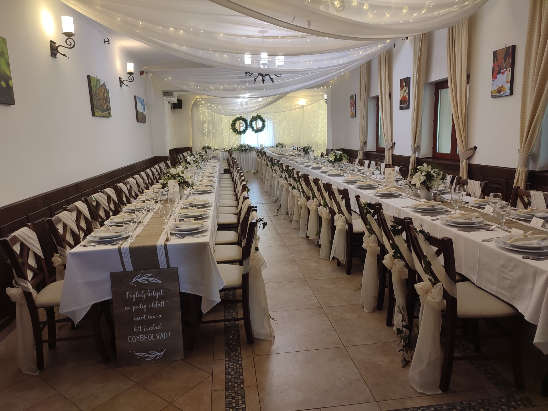 U-alakú főasztal az étterem végében