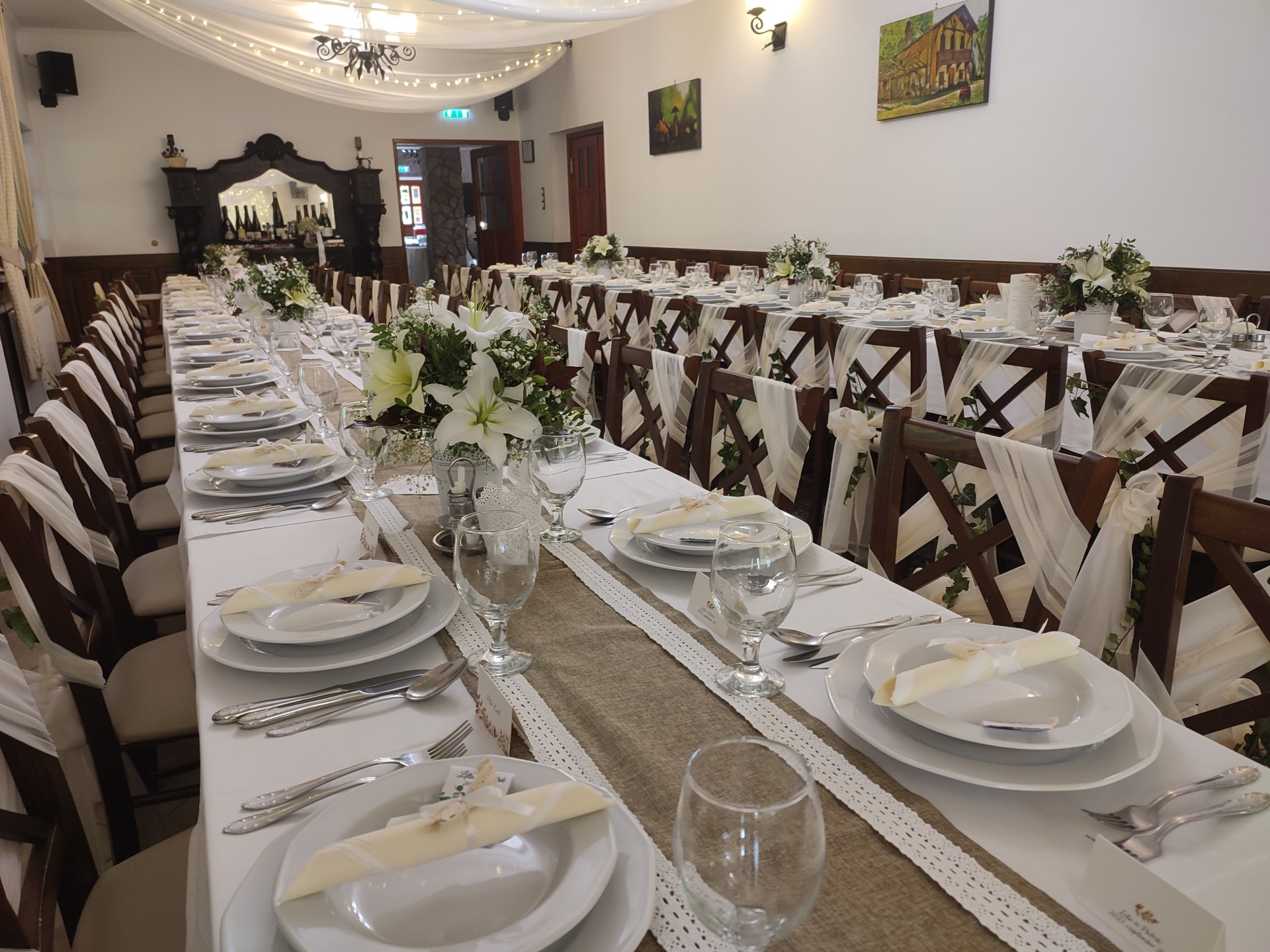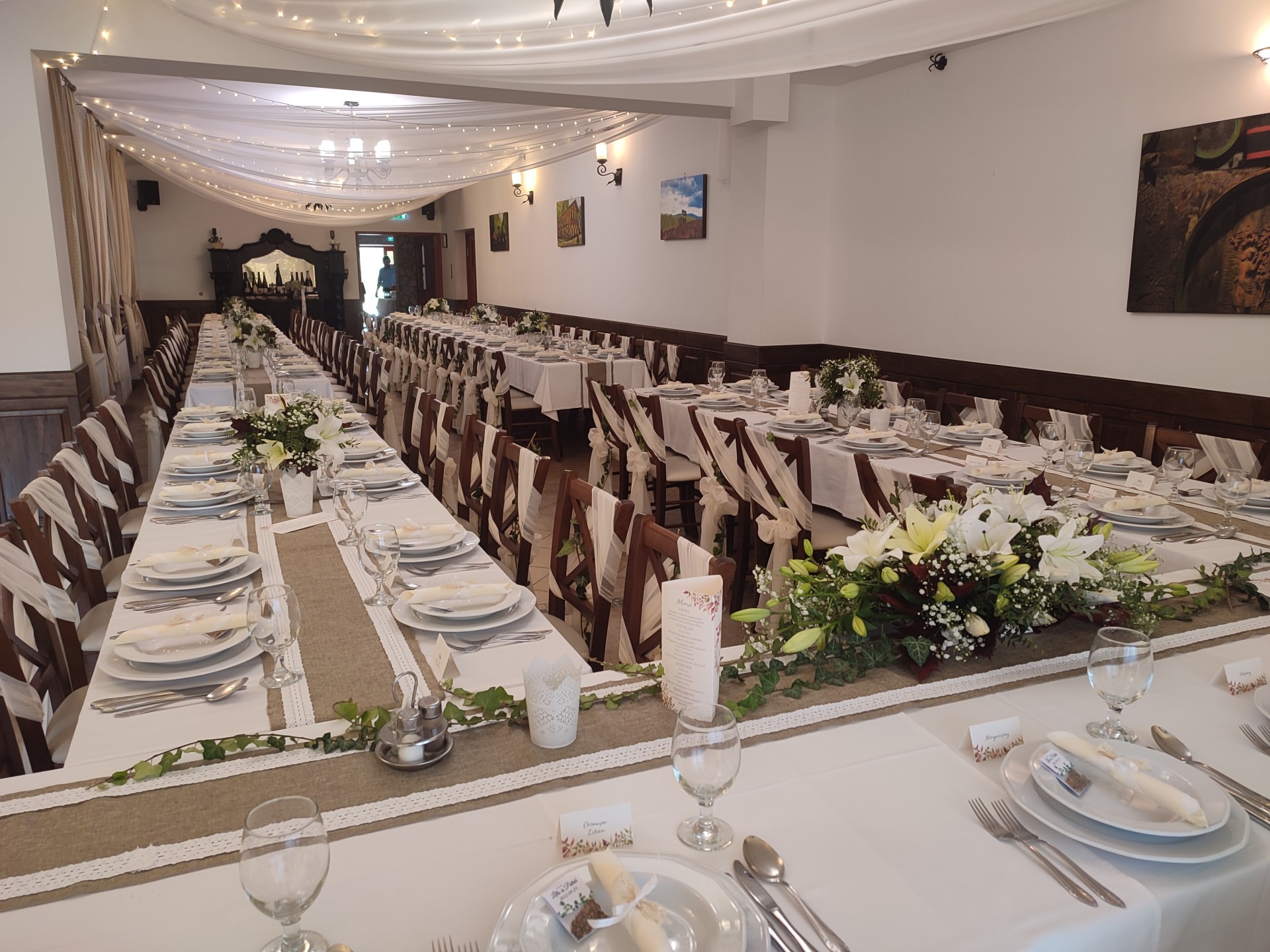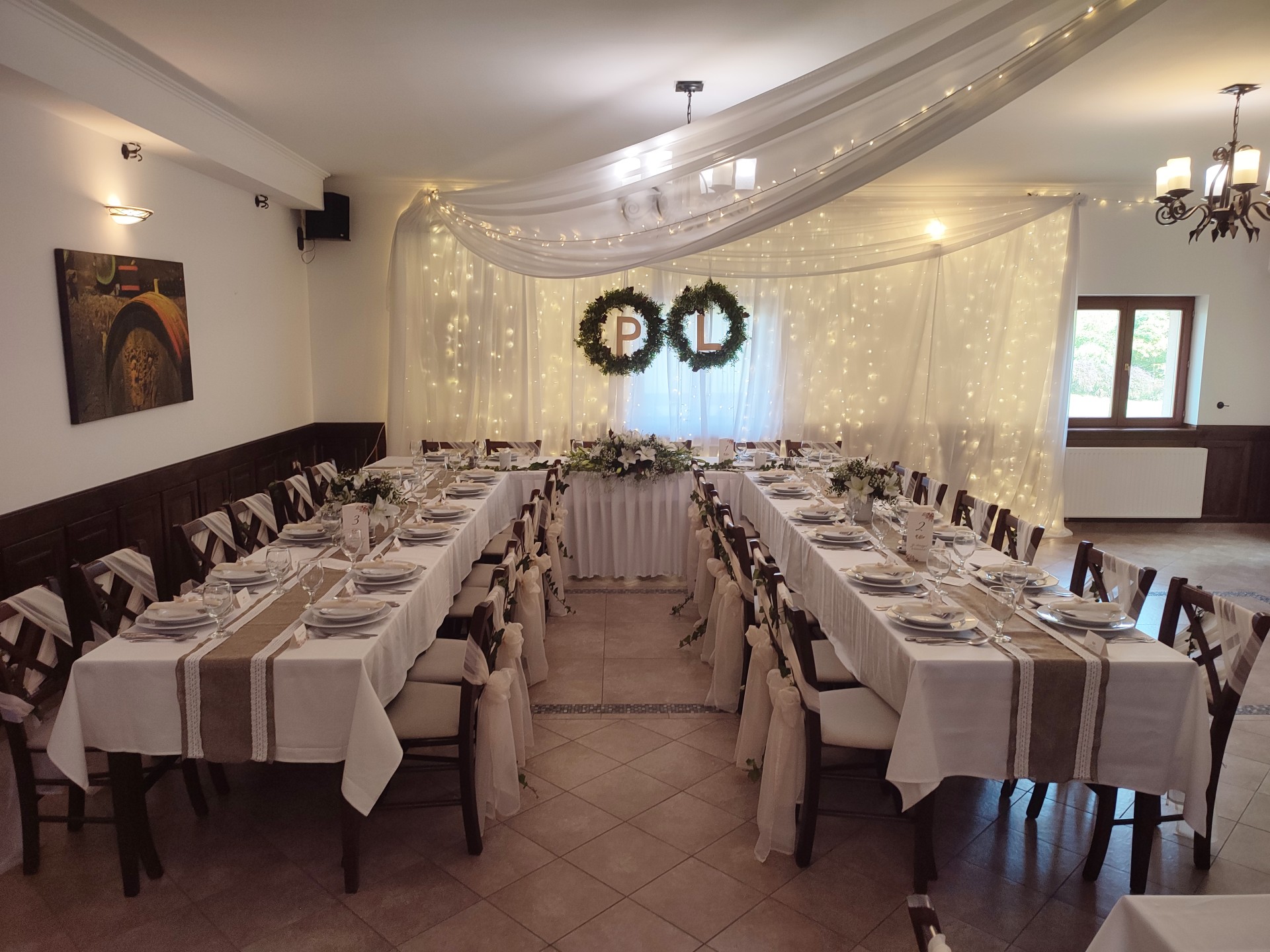 U-alakú főasztal az étterem végében