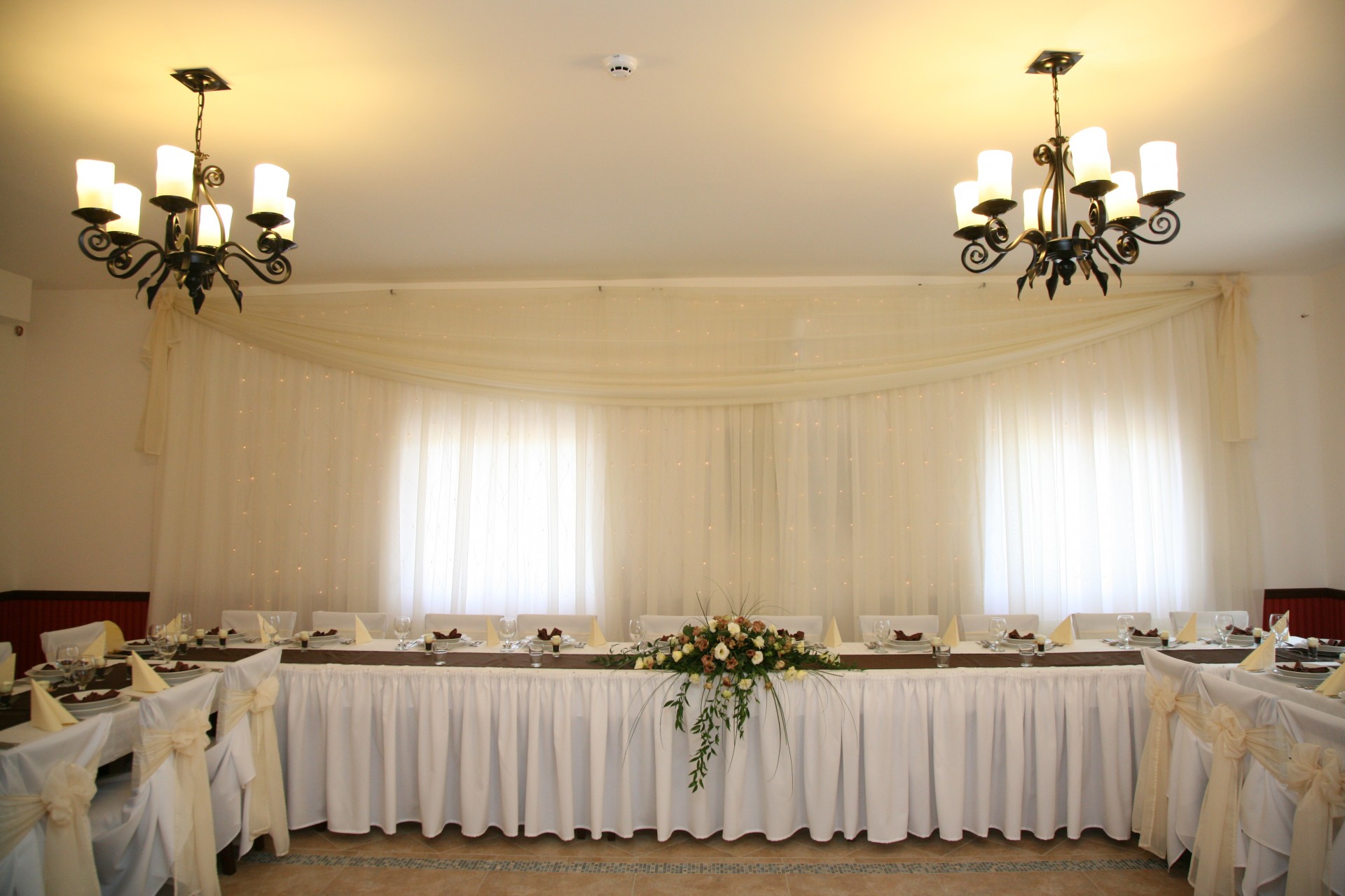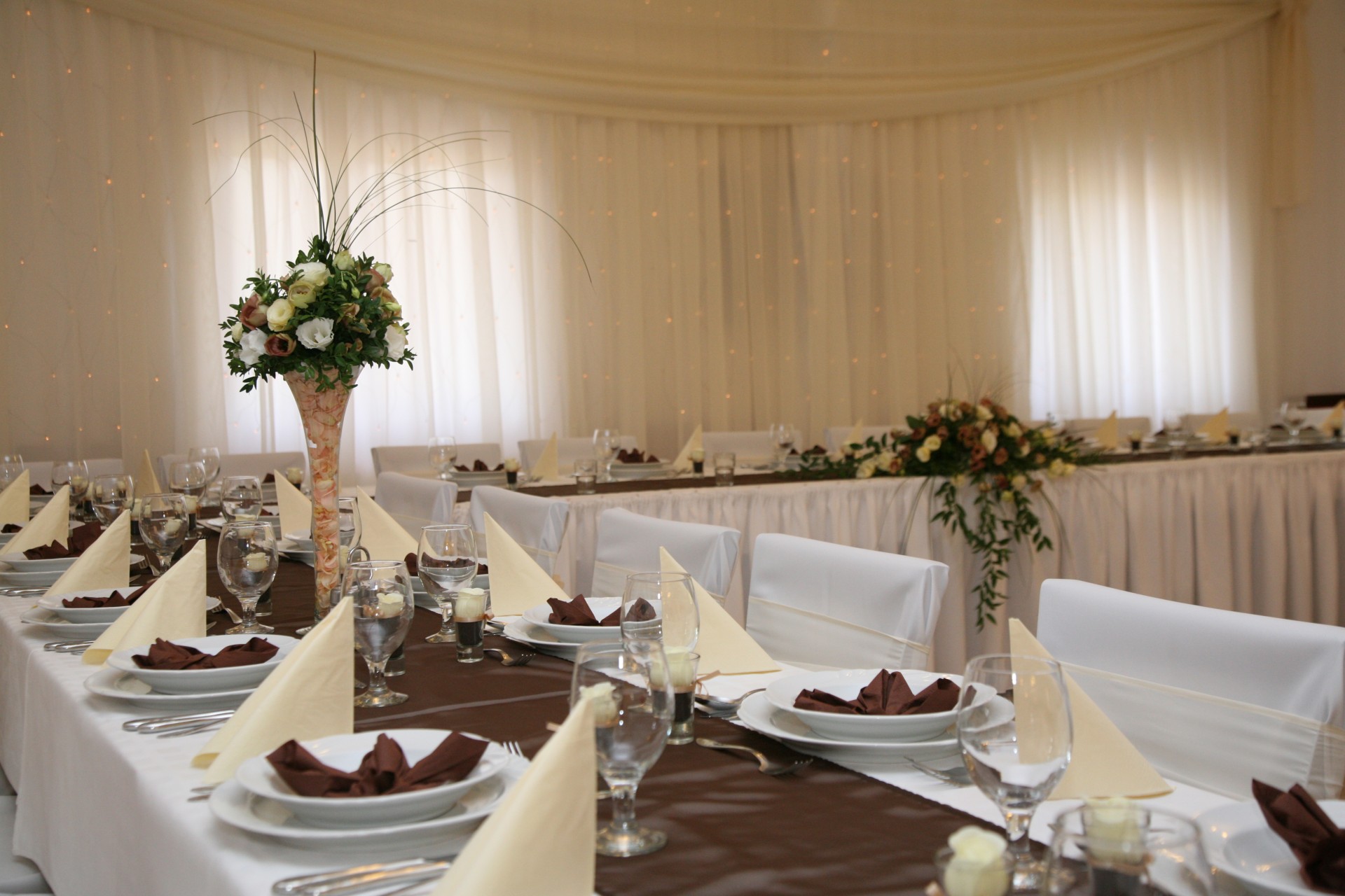 Barna - fehér színű dekoráció főasztala