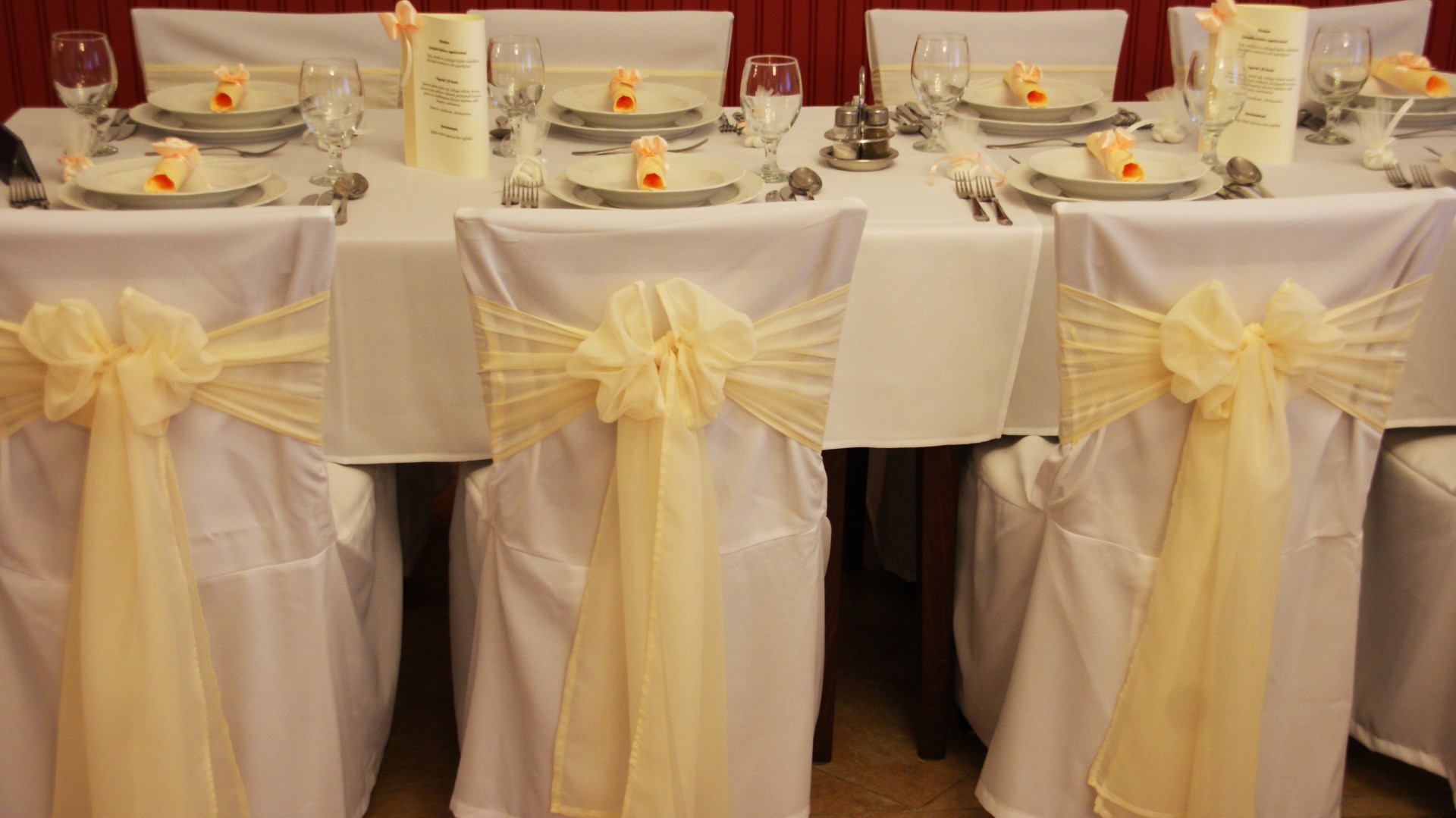 Fehér - krémszínű dekoráció az étteremben pasztell színekkel