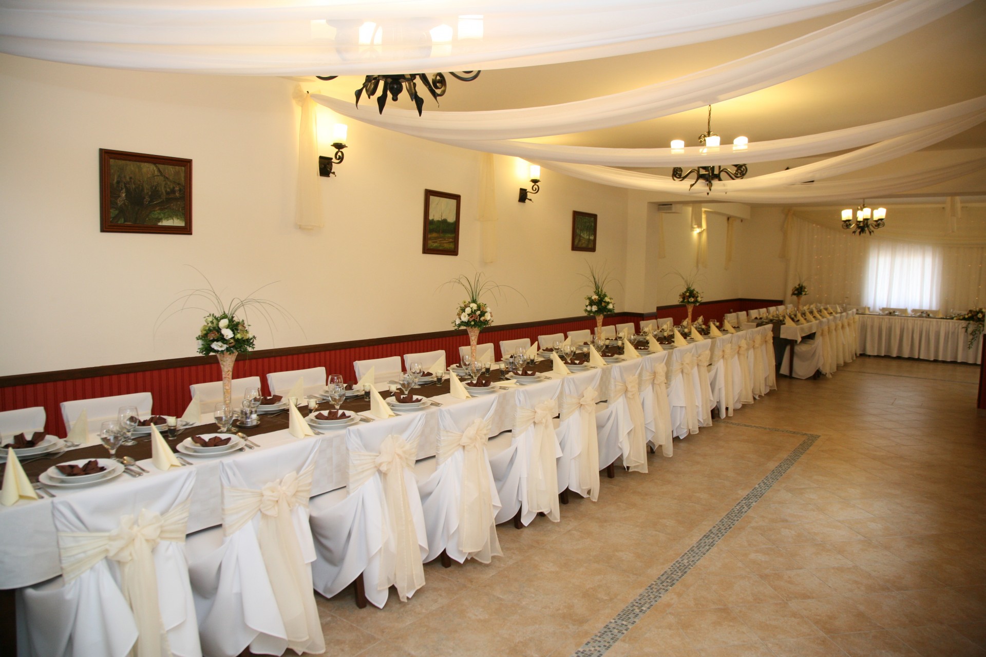 Barna - fehér színű dekoráció főasztala