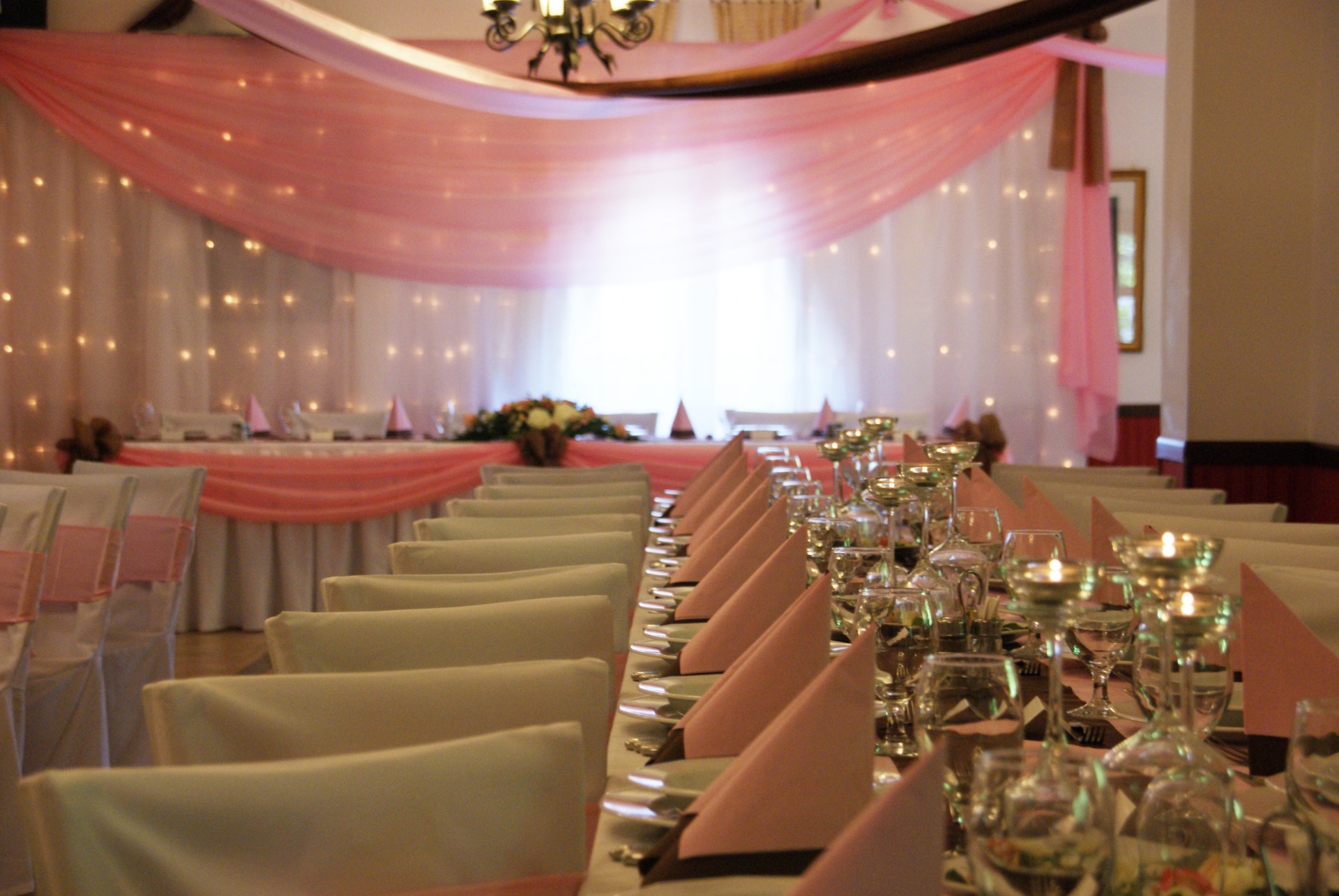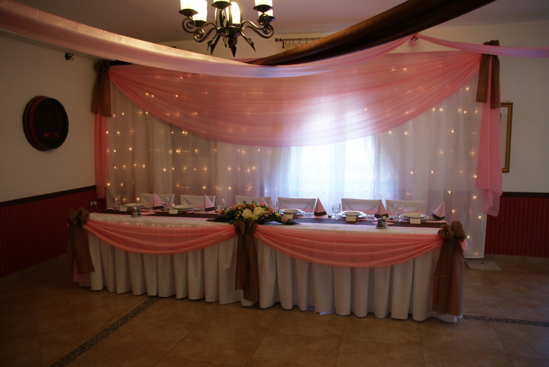 Barna - rózsaszín dekoráció főasztala
