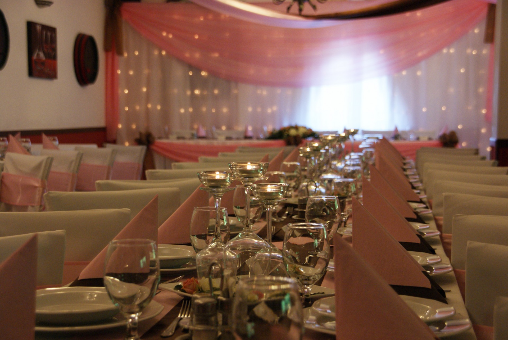 Barna - rózsaszín dekoráció az étteremben