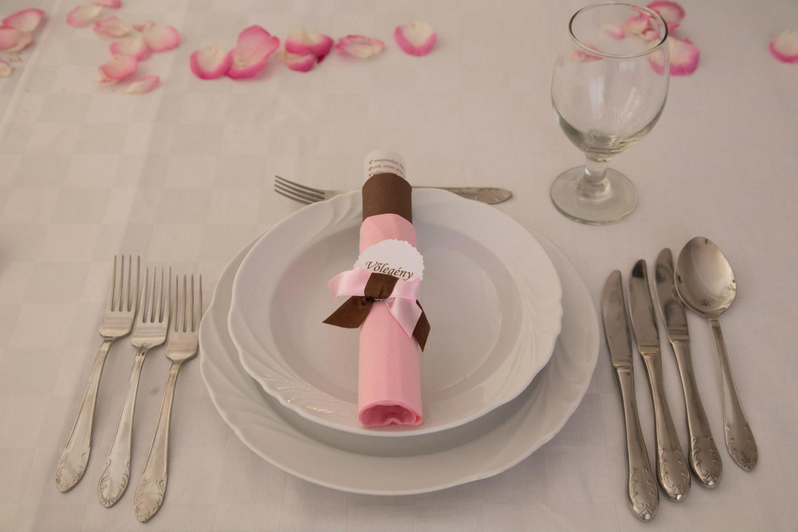 - Szalvéta - Megannyi variáció merül fel a szalvéta hajtása, anyaga és színe terén, de például henger alakba hajtva, kis masnival átkötve a névkártyákat is rá lehet kötni és ültetőkártyaként is funkcionálhat.